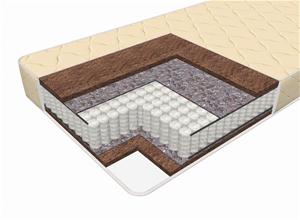 Модель «Комфорт» - матрац пружинный двусторонней мягкости изготовлен на основе пружинного блока «TFK» пл. 250 шт/м2, Н=120 мм., с защитным слоем из войлока термоскреплённого, с настилочным слоем из кокосовой койры 20 мм., спанбонда и облицованного чехлом из облицовочного материала с ручками и вентиляционными отверстиями. Одинаковая комплектация с двух сторон. Высота матраса 170 мм.